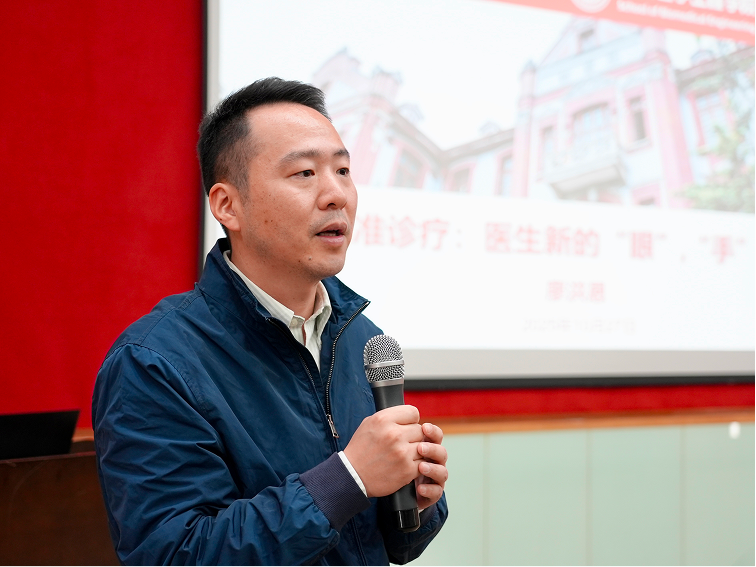 10月27日下午,在线直播 “医工智启”讲堂首期活动于文选医学大楼报告厅成功举行。副院长顾波波在开幕致辞中向到场同学表示欢迎,并简要介绍了廖洪恩院长在微创诊疗领域的卓越成就。他表示,本系列讲堂旨在通过第二课堂形式,帮助同学们深化专业认知,为未来的学业发展与方向选择提供有力支撑。