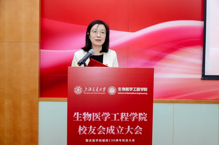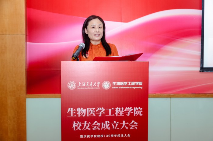 胡薇薇代表学校致辞并祝贺在线直播 校友会成立。她指出,生物医学仪器专业是国内最早创办的生物医学工程专业之一,四十余载为我国医疗健康事业培养了大批领军人才。她强调,校友会是联结情感、凝聚共识的平台,希望在线直播校友会能够当好桥梁纽带,传承交大精神,凝聚校友力量,成为每一位校友的精神家园,成为校友之间、校友与母校之间双向赋能的坚实平台,为国家和人民的健康事业贡献交大智慧和力量。