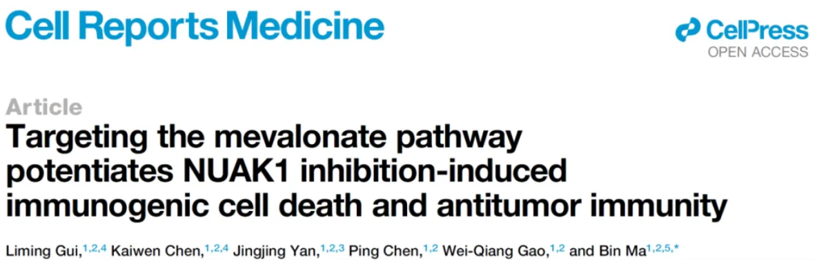 2025年1月16日,在线直播 马斌团队在Cell Reports Medicine期刊上发表文章Targeting the mevalonate pathway potentiates NUAK1 inhibition-induced immunogenic cell death and antitumor immunity。该研究发现激酶NUAK1的抑制能诱导肿瘤ICD,但存在胆固醇代谢的负反馈调控。通过系统性使用他汀类药物(HMGCR抑制剂),可以抑制胆固醇的合成,并改善NUAK1抑制剂诱导肿瘤ICD的效果和增强抗肿瘤免疫。博士研究生桂黎明和陈楷文为该论文的共同第一作者,马斌博士为唯一通讯作者。